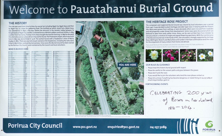Since 2007, the burial ground has been owned and maintained by the Porirua City Council.Volunteers continue to tend the roses for the enjoyment of visitors. In season – the flowering roses present a lovely sight and compliment the historical significance to the ancient burial grounds presided over by the St Albans church.